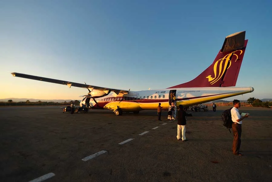 We arrived on a small plane from Yangon in late afternoon. Internal flights in Burma really are an experience, your luggage is wheeled onto the the plane in a small cart, and then on arrival at your destination, it's wheeled into the arrivals hall and pretty much dumped on the floor. Getting your luggage can be a bit of a free-for-all, and this was our first experience of it. By the time we left Burma, we'd made 4 more internal flights and were pretty much used to it.