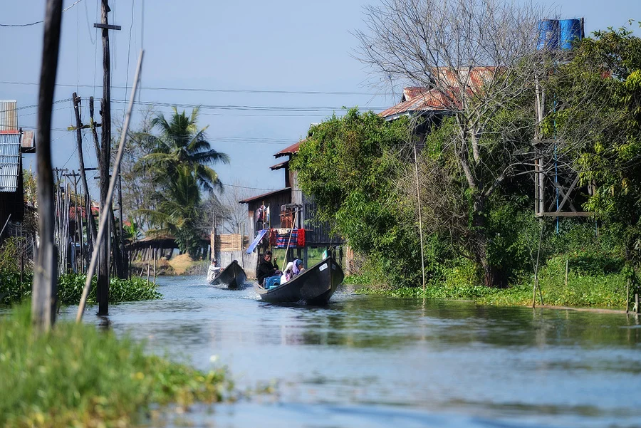 On arriving at Heho airport, north of the lake, we were met by a driver sent by the hotel. He took us on the hour long drive down to the main town of Nuang Shwe, at the edge of the lake, where we met our boat driver, who was going to take us on the last part of the journey across the lake to our accommodation. We'd decided to stay in a floating hotel towards the south of the lake and it was going to take us an hour to get there. By this time it was dark, and also getting pretty cold, which we hadn't prepared for as it had been hot and sunny when we'd boarded the plane in Yangon. We had warmer clothes, but they were locked away in our bags, which were under a tarp at the front of the narrow boat. As we were heading across the lake in the (by now) pitch black, neither of us much fancied crawling to the bow and going through the cases to get our warmer clothes out, so we pulled the blanket up around our necks, hugged the life jackets tighter, and just dealt with the cold.