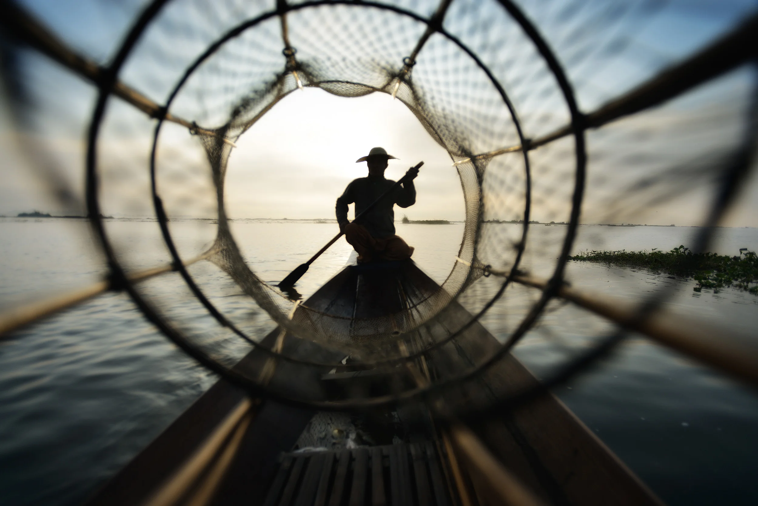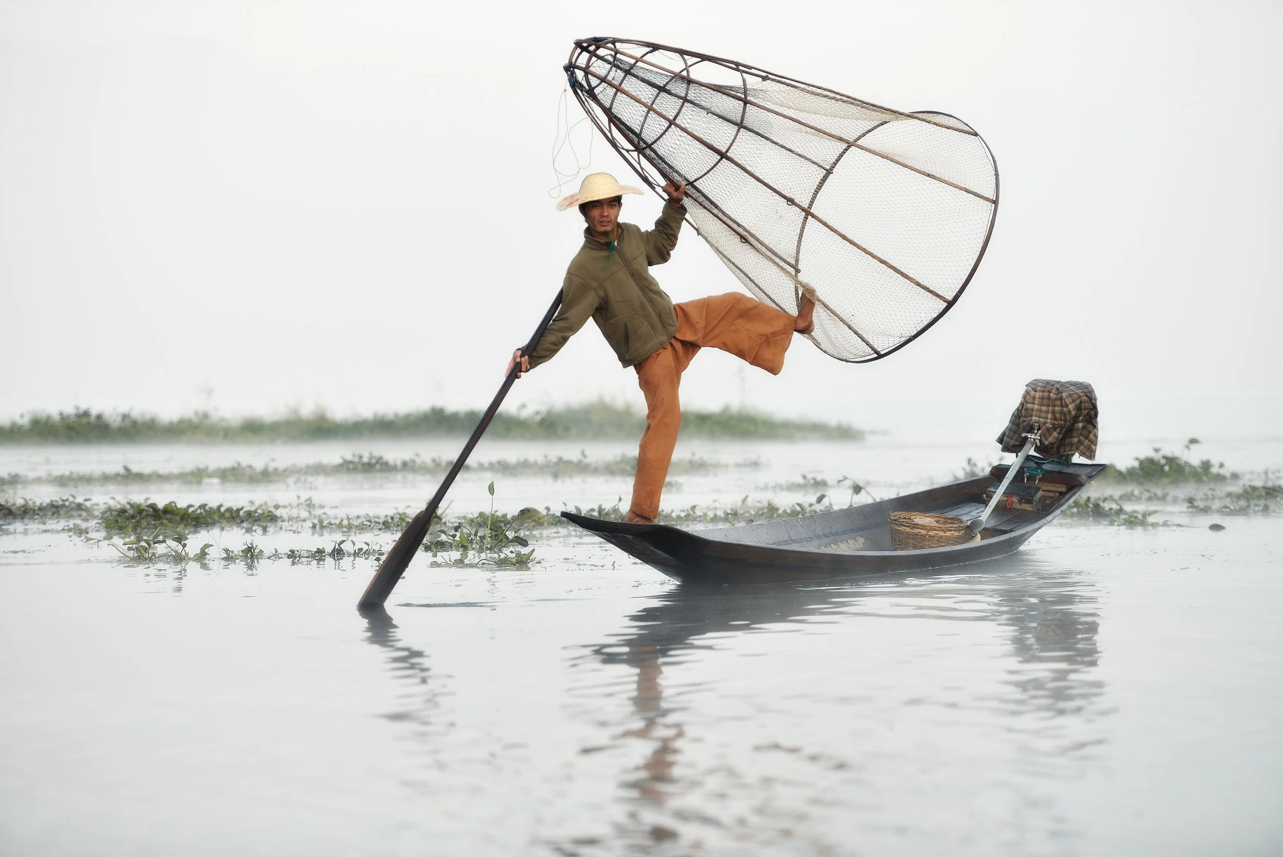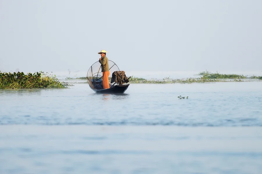 Anyway, we went back to the hotel for breakfast that morning satisfied that we'd got a good portfolio of images of the fishermen, both at sunset and sunrise the following morning. I thought that I was finished with boats and lake fishermen, but I didn't realize then that a couple of mornings later, I'd be in a small boat on another misty lake in Mandalay…