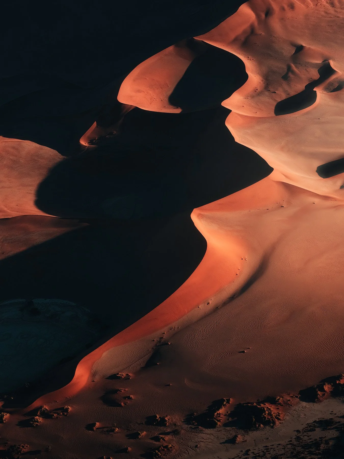 Our four day stay in this amazing lodge will be the highlight of the tour, and will give us plenty of time to ensure that you get the best possible photographic return on our time here. On various sessions here we’ll split into two smaller groups with one group taking the the air for a sunrise or sunset helicopter shoot above the dunes, while the other head to the iconic trees of Deadvlei or the fascinating lines of the dune spines. We’ll rotate the groups to ensure that during our stay we will shoot at least one sunrise and one sunset in Deadvlei as well as the iconic towering dune spines at both sunrise and sunset and everyone will get a sunrise or sunset helicopter flight above the desert, an absolutely unforgettable experience where you’ll be able to capture the abstract forms of the dunes from above. On top of this we’ll also spend some time scouting for Oryx to add scale to this immense landscape.