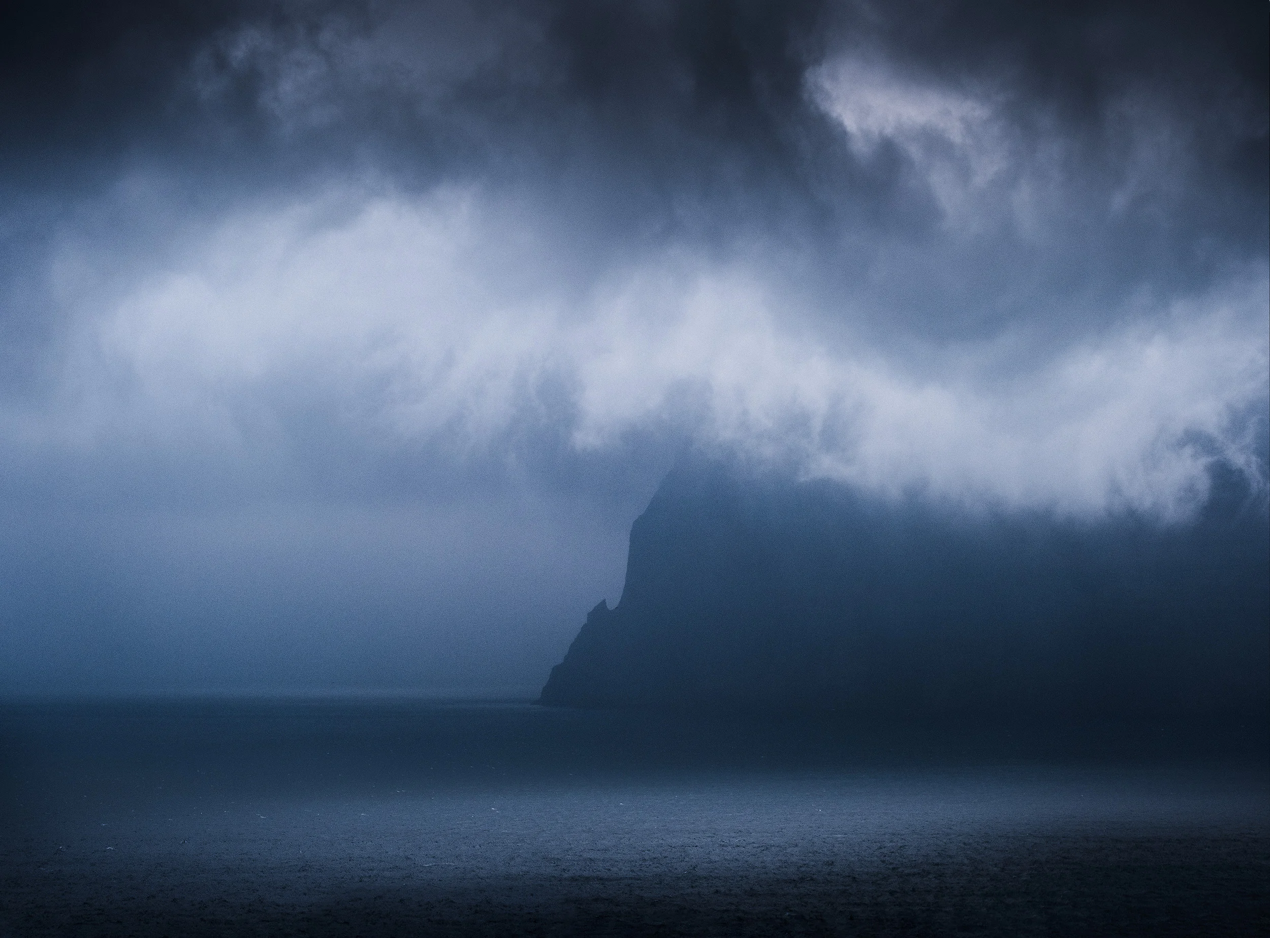 Storm clouds around the island of Kunoy, as seen from Trøllanes on neighbouring Kalsoy