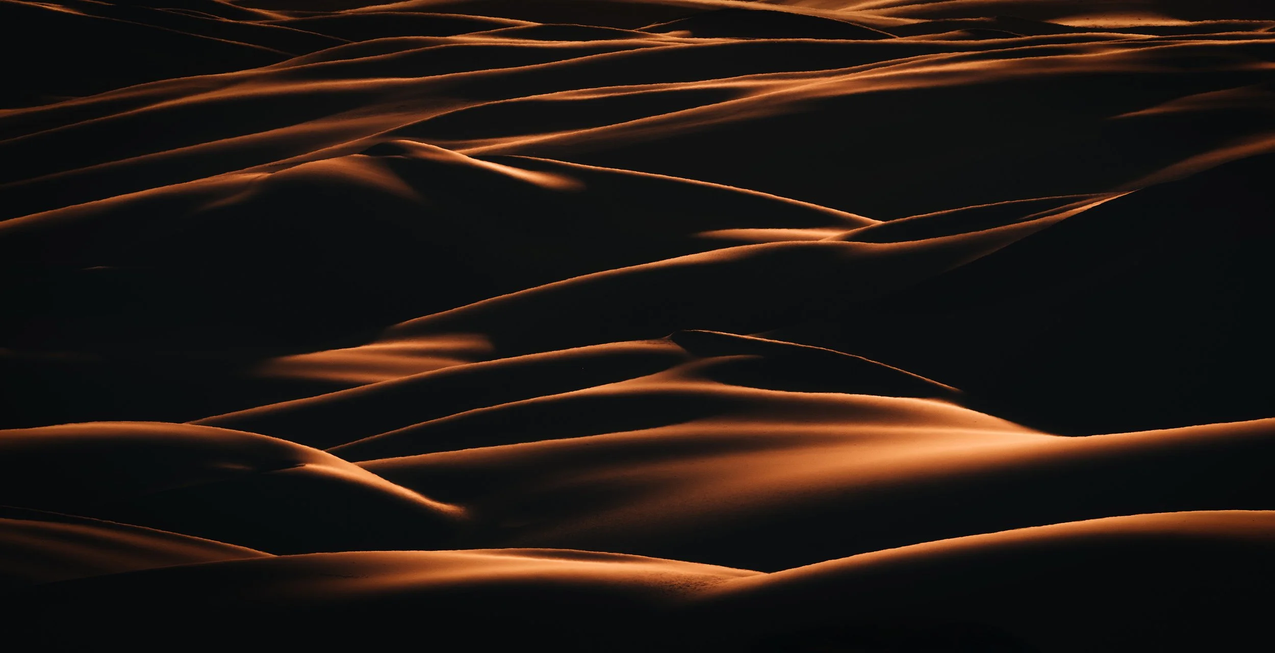 The last light of day picks out the shape and texture of the dunes in the valley of Sossusvlei