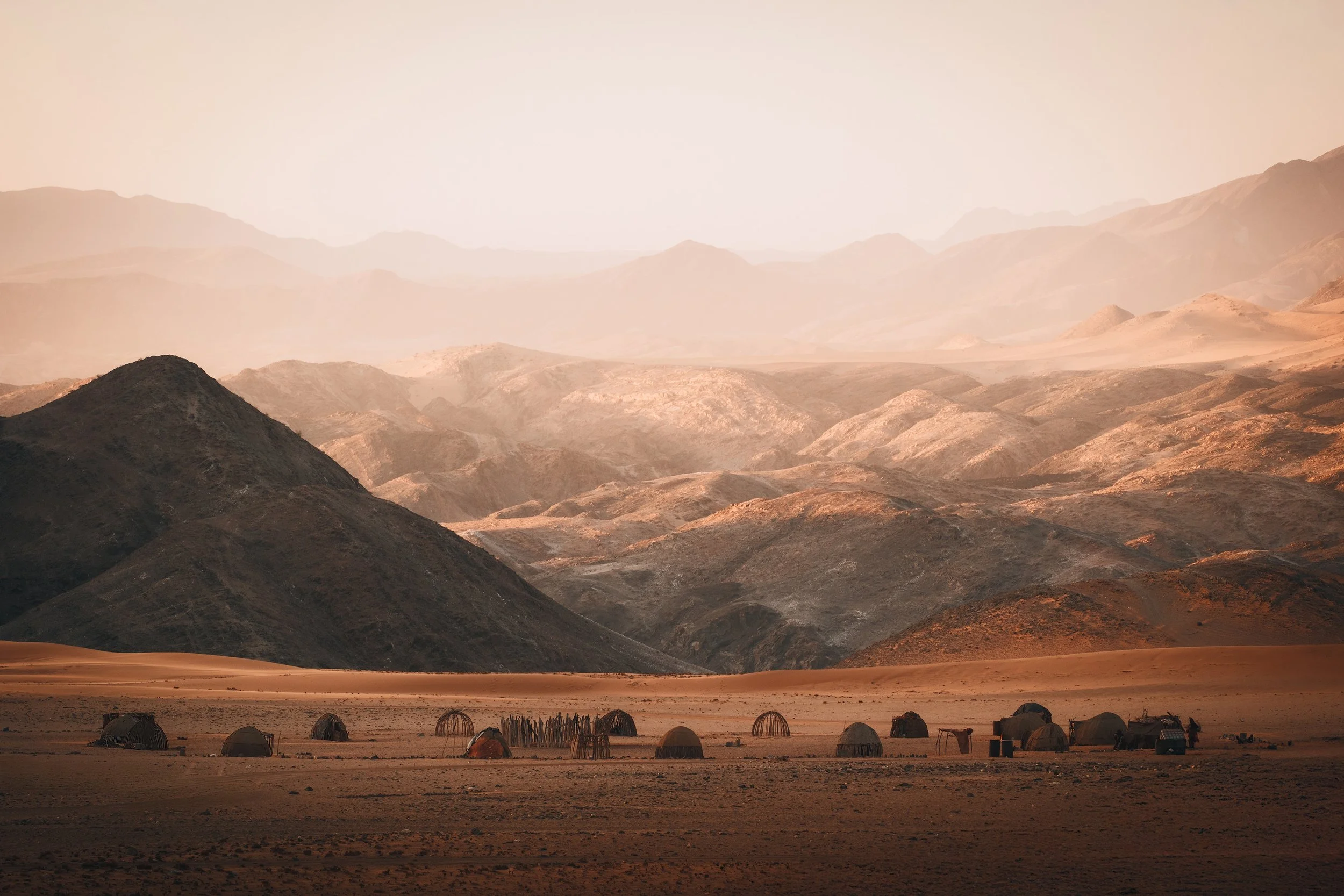 Nestling beneath the mountains of the Angolan border, the people of the Himba live in these tiny desert huts