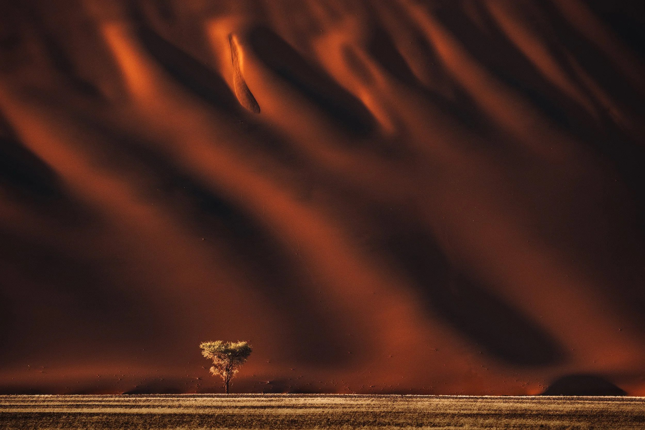 Deep in the dunes of southern Namibia is a river valley, carved out hundreds of thousands of years ago, the river now is long gone, returning only briefly in the rare rains that come here once or twice a decade. Running alongside the valley are some of the oldest and tallest dunes in the world, coloured beautiful deep oranges and red due to all the iron oxide, they are an abstract dream to photograph.