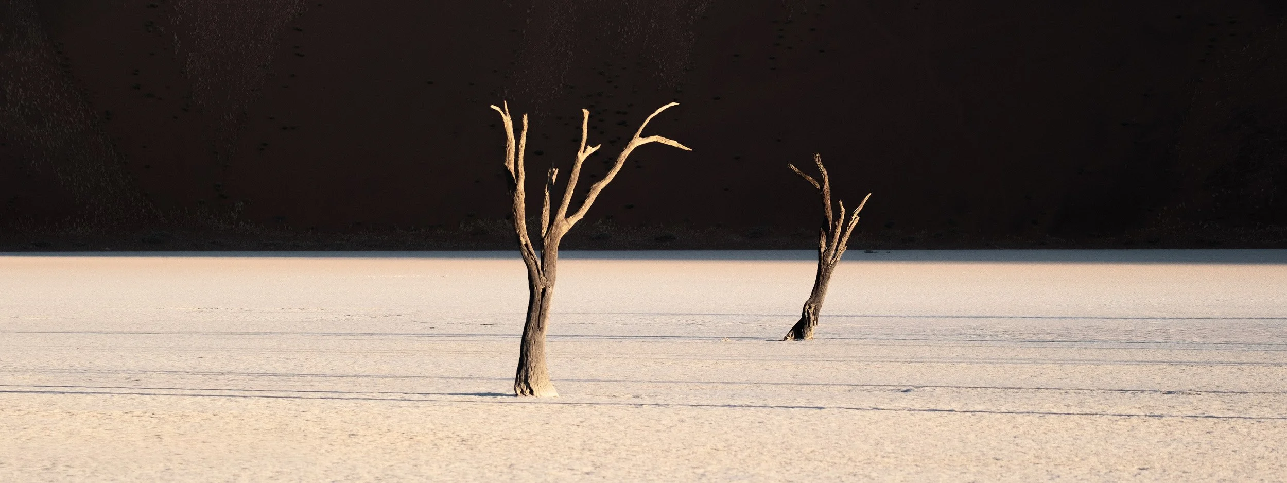 The petrified remains of two camelthorn trees on the Deadvlei in Namibia