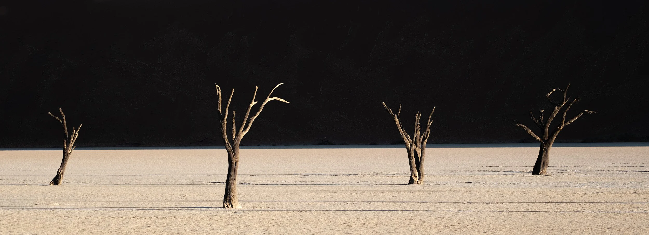 On my second sunrise visit to Deadvlei we were incredibly lucky to get mist, which is incredibly rare and happens perhaps once in a decade. The combination of mist with the trees against the dunes as the first light cut across the pan made for really simple compositions